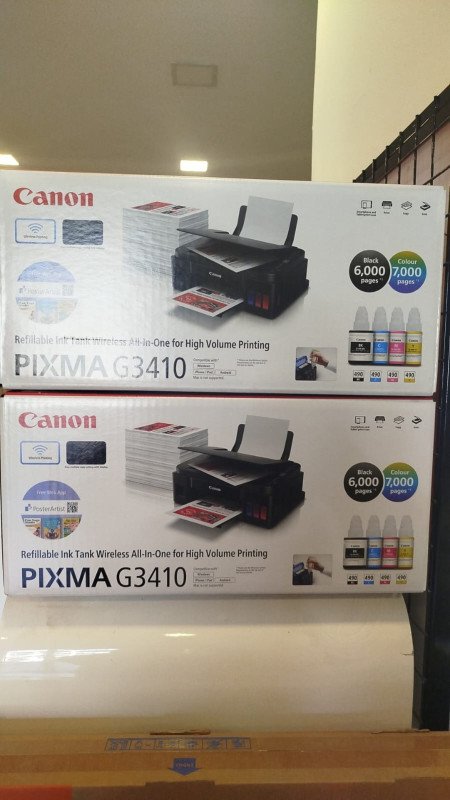 A high-volume wireless all-in-one Canon printer featuring refillable ink tanks for extremely low-cost printing. Ideal for home and office use with print, copy, and scan functions. Delivers up to 6,000 pages (black) and 7,000 pages (color) per refill.