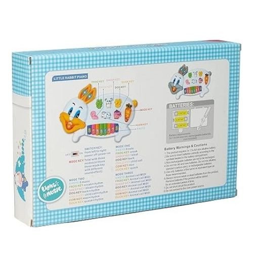 A fun musical keyboard toy in a cute bunny shape, featuring colorful keys and animal buttons that play sounds and melodies. Helps develop early learning, hand coordination, and sensory skills for young children.