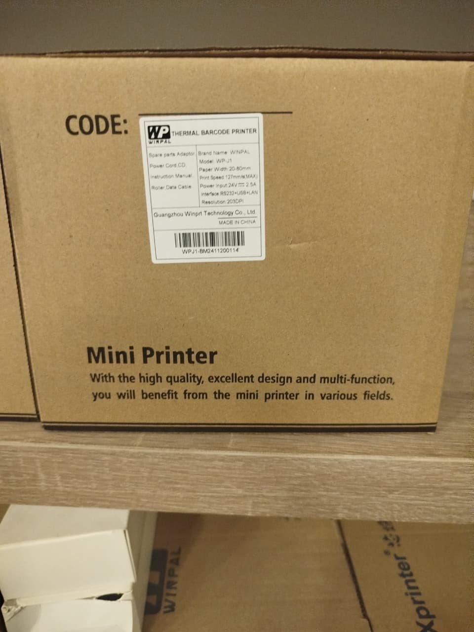 طابعة Winpal WP-J1 هي طابعة باركود حرارية صغيرة الحجم مناسبة للأعمال التي تحتاج إلى طباعة ملصقات بسرعة وكفاءة. تدعم عرض ورق من 20 مم حتى 80 مم، وتصل سرعة الطباعة إلى 127 مم/ثانية. تأتي بمنافذ RS232 وUSB وLAN، مما يجعلها مثالية للمحلات التجارية، المستودعات، الصيدليات، وشركات التوصيل. دقة 203DPI تمنحك طباعة واضحة للباركود والملصقات.
